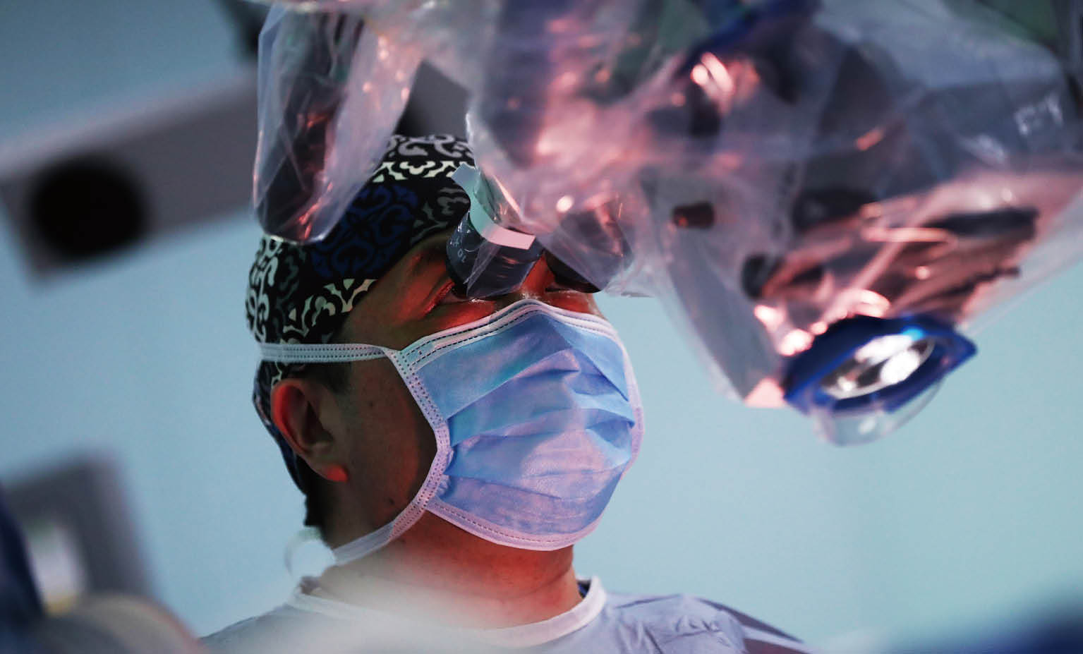 分子可視化手術(shù)導(dǎo)航系統(tǒng),使“不可見”的病理診斷數(shù)據(jù)真正“ 可見”,實(shí)現(xiàn)了針對神經(jīng)腫瘤分子級別的切除。圖為毛穎教授手術(shù)